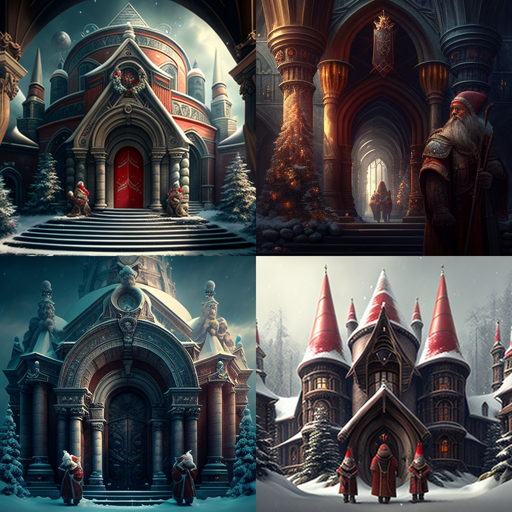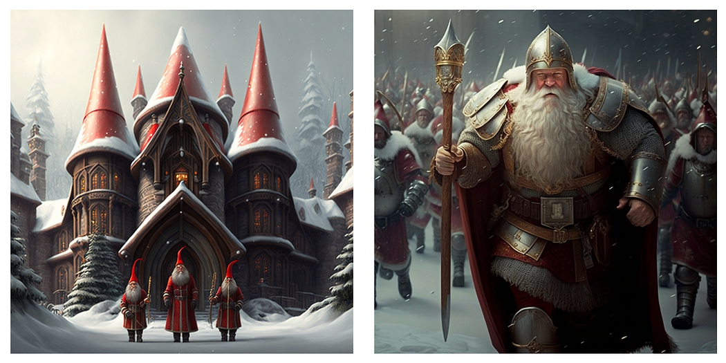 Ok. So we got a Santa, a couple of elves and a sort of a cathedral there. But they don’t yet look like going into battle against the forces of time and physics do they? We need to start refining the subject of the image.